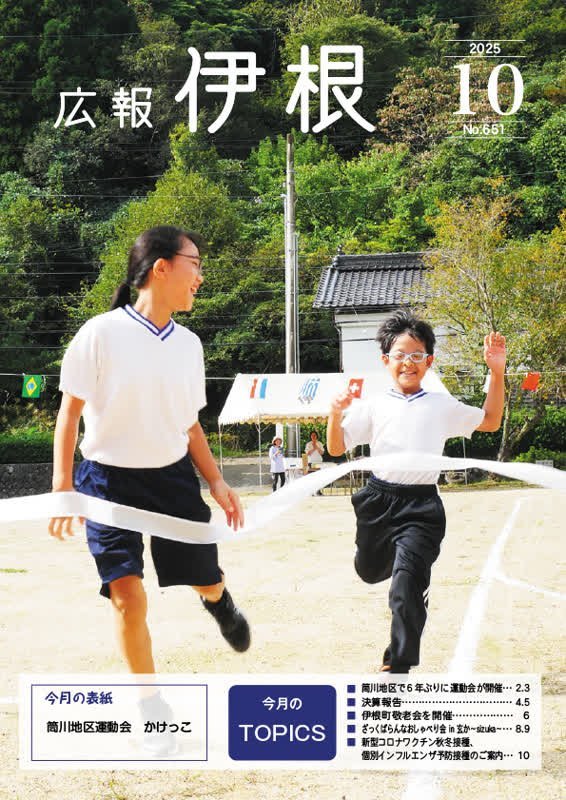 今月のTOPICS 〇筒川地区で6年ぶりに運動会開催 〇決算報告 〇予防接種のご案内 他 紙面は、「書類・資料」→「広報」→「広報伊根10月号」をご確認いただくか、下記のボタンからご覧ください。