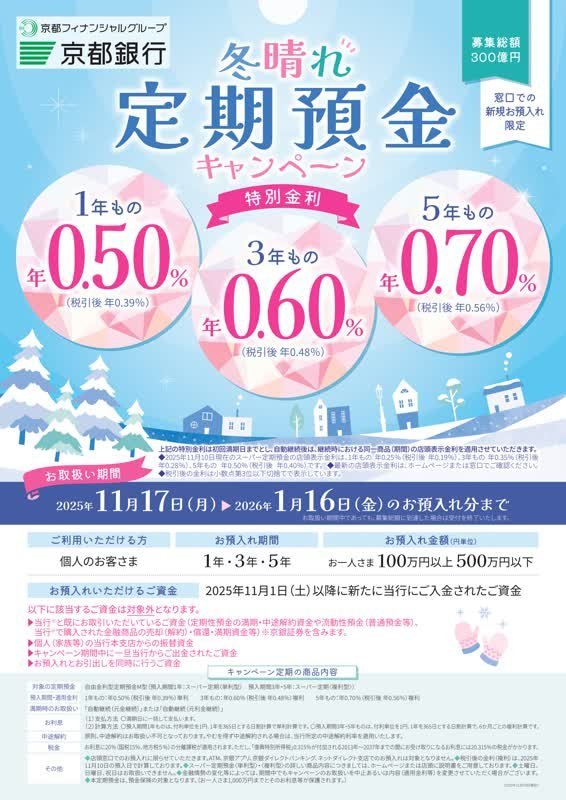 京都銀行より「冬晴れ定期預金キャンペーン」についてご案内いたします!