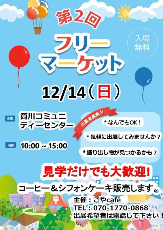 筒川コミュニティーセンターにて フリーマーケットを開催します、 たくさんの方のお越しをお待ちしております。