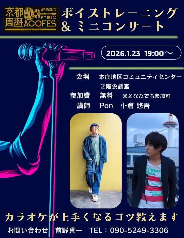 講師は、京都市内でシンガーソングライターとして活動する小倉悠吾とPonが担当します。
